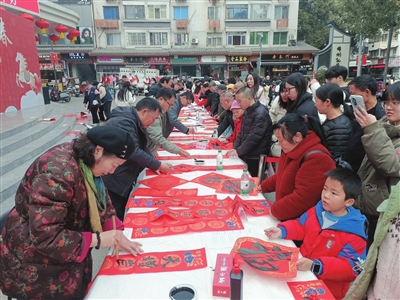 書(shū)法家為群眾寫(xiě)春聯(lián)。記者 劉鳳君 攝