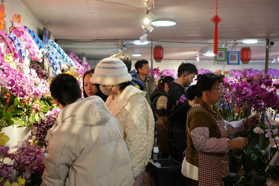 夕陽西下,意猶未盡的人們抱著花卉,面帶笑容地走向停車場。汽車后備箱里,塞滿了蝴蝶蘭、銀柳、北美冬青,也塞滿了對新一年的美好期盼。