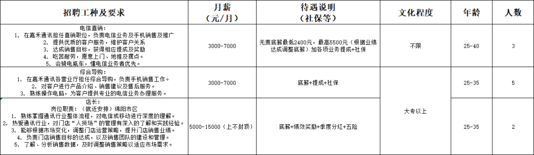 崗位:營業(yè)員(人數(shù)不限)