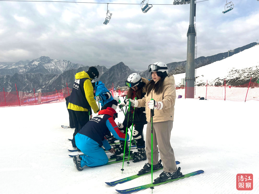 雪道上,三五成群的年輕人結(jié)伴滑行,用速度與歡笑重新定義年味。“以前過年就是在家吃吃喝喝,現(xiàn)在不一樣了,滑雪又刺激又好玩,這才是我們年輕人該有的春節(jié)!”來自平武黃羊鄉(xiāng)的楊超,一人帶著四個(gè)孩子,在雪地里盡情釋放活力。同鄉(xiāng)的劉艷特地購置了一身亮色滑雪服,“玩要玩得盡興,也要穿得夠‘出片’。”她說。