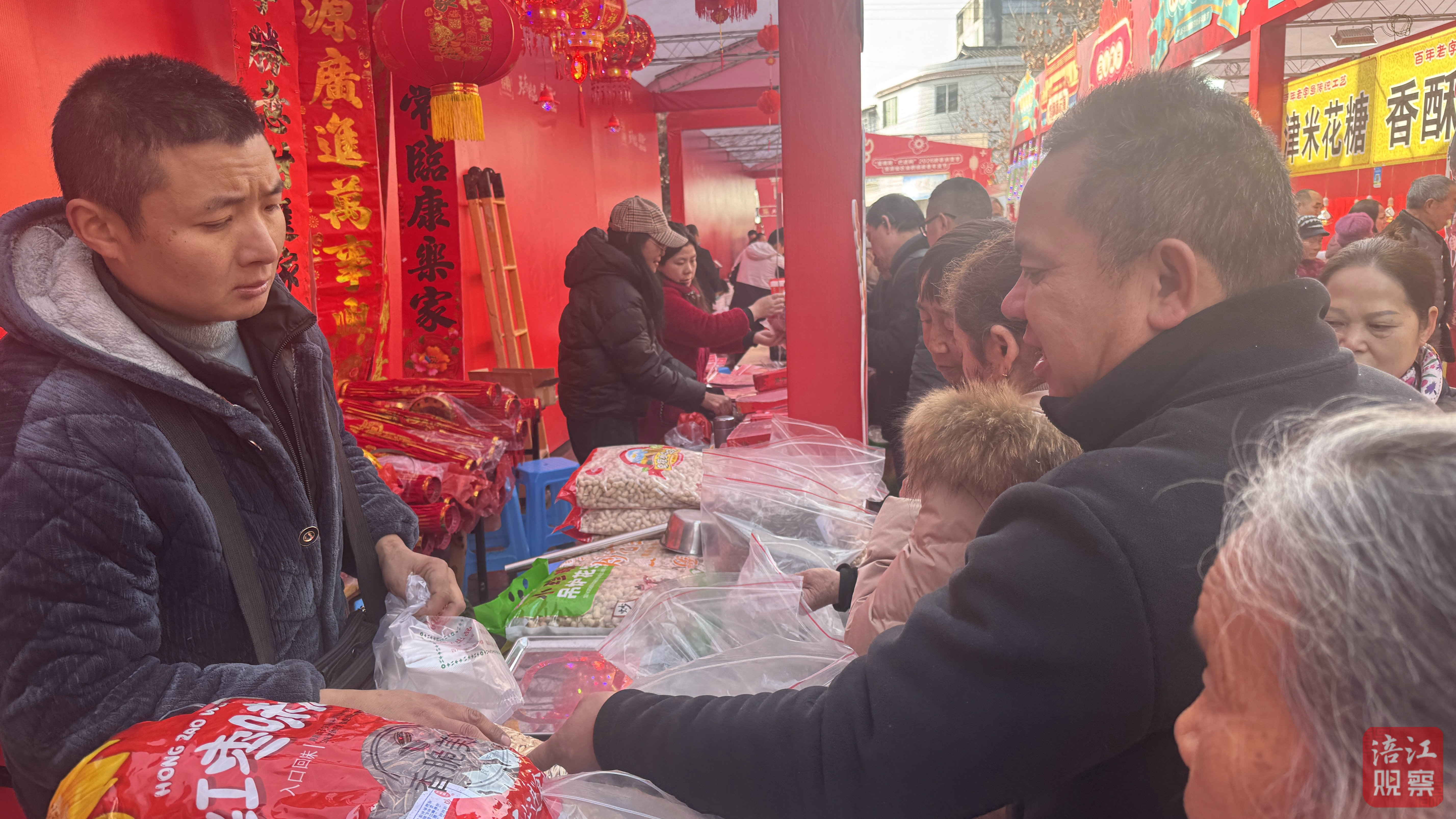 集市上,紅紙金字的春聯(lián)與福字交相輝映,鋪展出一道溫暖的風景;剛出籠的米糕熱氣裊裊,芝麻燒餅金黃酥脆,各式餡餅香氣四溢;糖果攤旁,酥糖、奶糖、沙琪瑪備受歡迎。歡聲笑語中,人人手提滿滿的年貨,空氣中交織著糖香與臘味,將春節(jié)的溫馨愈釀愈濃。