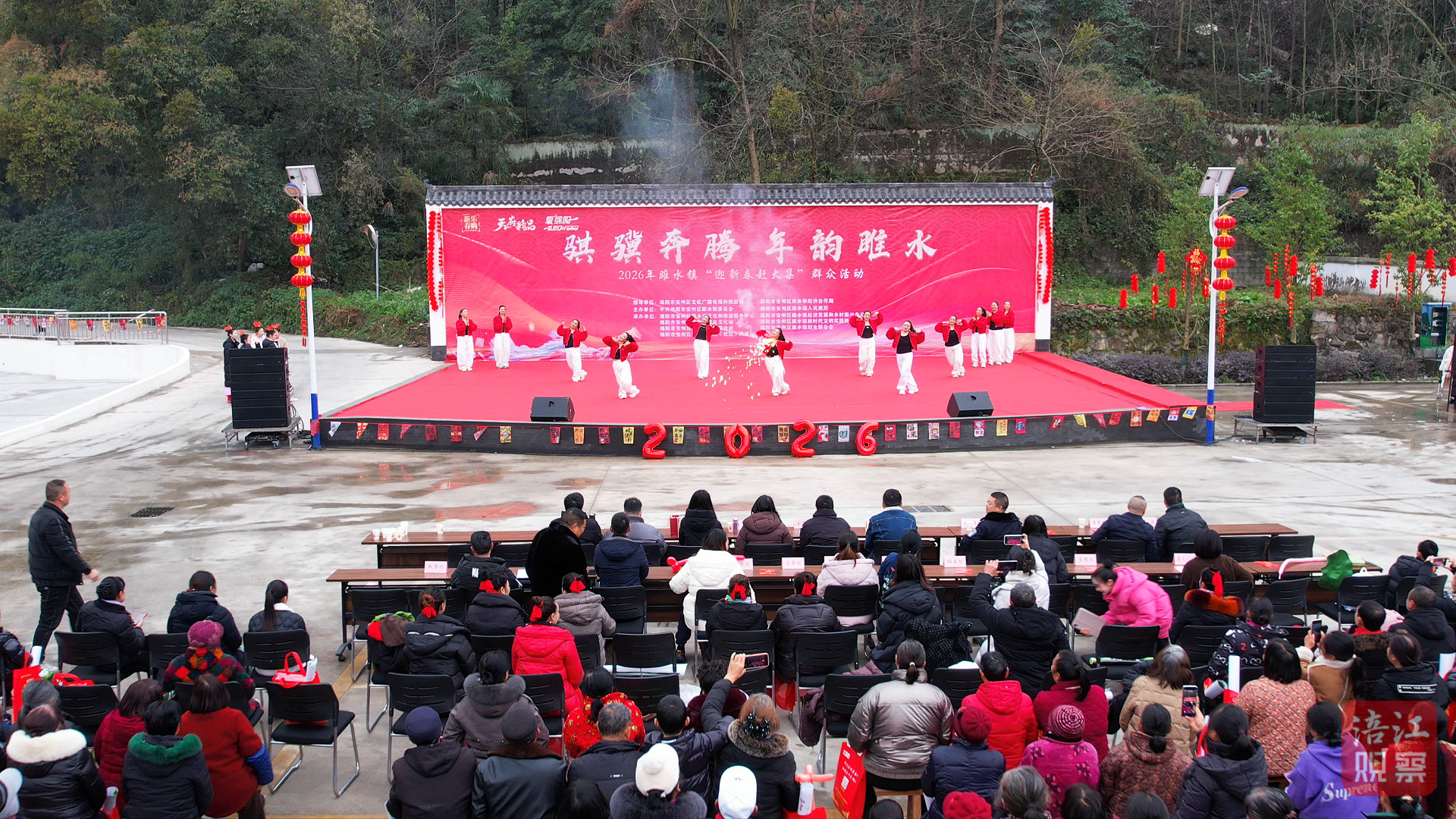 在鹽亭縣黃甸鎮(zhèn),犀牛廣場上鑼鼓喧天、人聲鼎沸,“鄉(xiāng)村大集嘉年華,龍騰馬躍慶新春”2026年春節(jié)主題文化活動在此拉開帷幕。