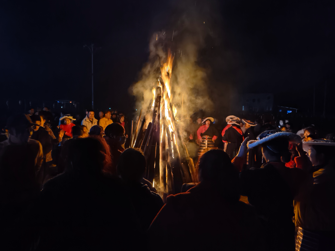 “篝火燃起來(lái),歌聲唱起來(lái),鍋莊跳起來(lái)!”2月10日晚,鹽亭縣西陵鎮(zhèn)麒麟村文化廣場(chǎng)上,一場(chǎng)別開(kāi)生面的“村晚”火熱上演,上千名群眾圍著篝火載歌載舞。