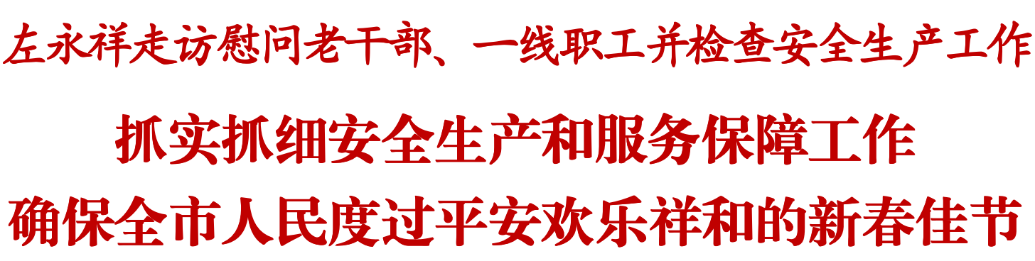 檢查過程中,左永祥強(qiáng)調(diào),春節(jié)是中華民族最重要的傳統(tǒng)佳節(jié),是萬家團(tuán)圓的日子,做好保安全、保供應(yīng)、保暢通等工作至關(guān)重要。全市各級各部門要強(qiáng)化責(zé)任意識、樹牢底線思維,以嚴(yán)謹(jǐn)、周密、細(xì)致的態(tài)度完善節(jié)日期間各項部署,確保責(zé)任到位、措施到位、工作到位。要毫不松懈抓好安全生產(chǎn),全面排查整治有限空間作業(yè)、道路交通、城鎮(zhèn)燃?xì)狻⒕皡^(qū)景點等重點領(lǐng)域和人流密集場所安全隱患,加強(qiáng)對煙花爆竹儲運(yùn)、銷售、燃放等環(huán)節(jié)的嚴(yán)格管理,落細(xì)落實森林草原防滅火措施,加強(qiáng)安全科普宣傳,強(qiáng)化社會面巡防管控,切實把風(fēng)險隱患消滅在萌芽狀態(tài)。要搶抓春節(jié)消費(fèi)需求旺盛的有利時機(jī),創(chuàng)新多元化、個性化、高品質(zhì)消費(fèi)場景,提供更多優(yōu)質(zhì)文旅產(chǎn)品和服務(wù),扎實抓好民生物資保供穩(wěn)價工作,充分激發(fā)節(jié)日消費(fèi)活力。要精心組織好春運(yùn)工作,加強(qiáng)客流形勢動態(tài)研判,及時做好擁堵路段疏導(dǎo)工作,動態(tài)優(yōu)化運(yùn)力調(diào)配,切實提升服務(wù)質(zhì)量,更好保障群眾安全便捷順暢出行。要嚴(yán)格執(zhí)行值班值守制度,加強(qiáng)對極端情況的預(yù)警和應(yīng)對準(zhǔn)備,科學(xué)完善應(yīng)急預(yù)案,提前預(yù)置應(yīng)急力量,確保應(yīng)對及時、處置高效。