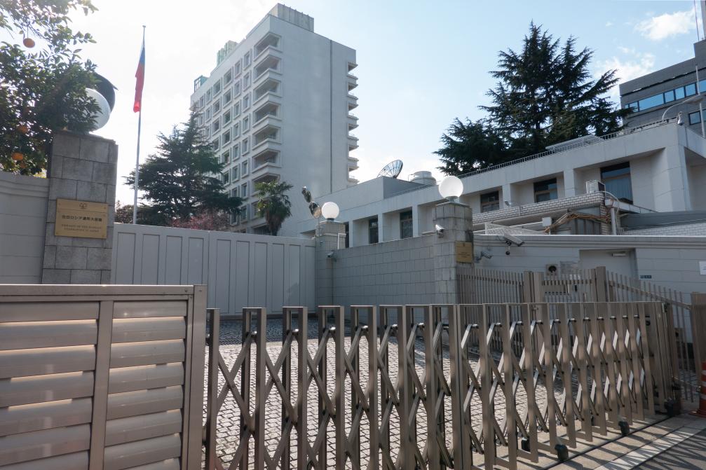 這是2022年2月23日在日本東京拍攝的俄羅斯駐日本大使館。新華社記者張笑宇攝