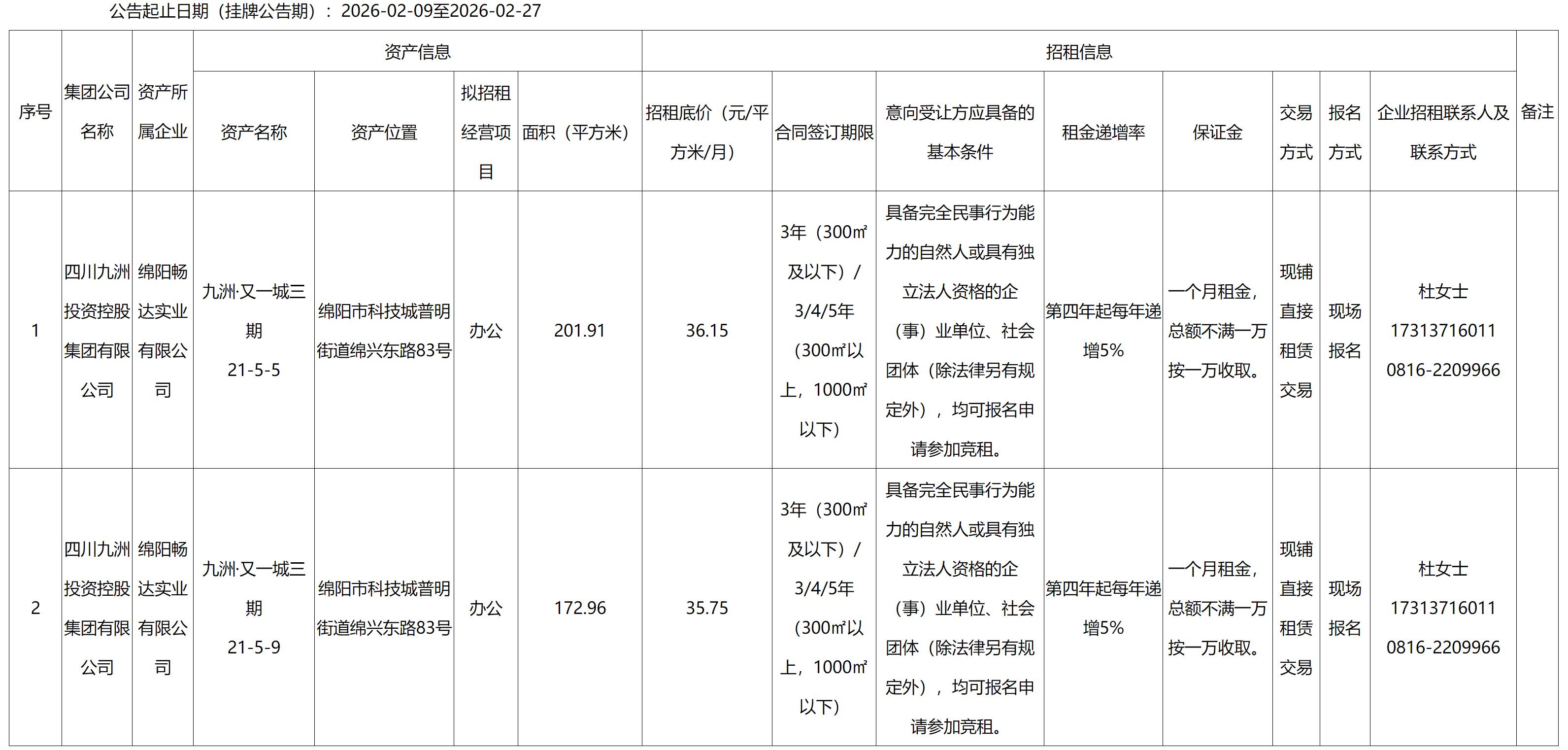 四川九洲千城商業(yè)管理有限公司高新項目部九洲·又一城三期項目房屋出租公告