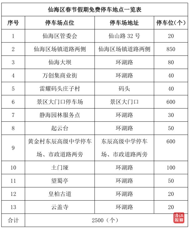 此外,春節(jié)假期,仙海區(qū)2500個停車位全部免費,讓大家輕輕松松開啟仙海之旅。
