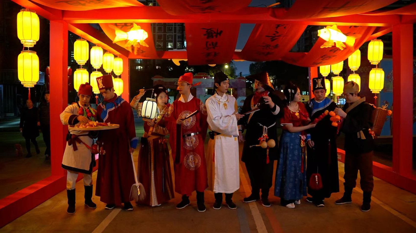 夜游錦江景區(qū),NPC和游客一同賀新春。