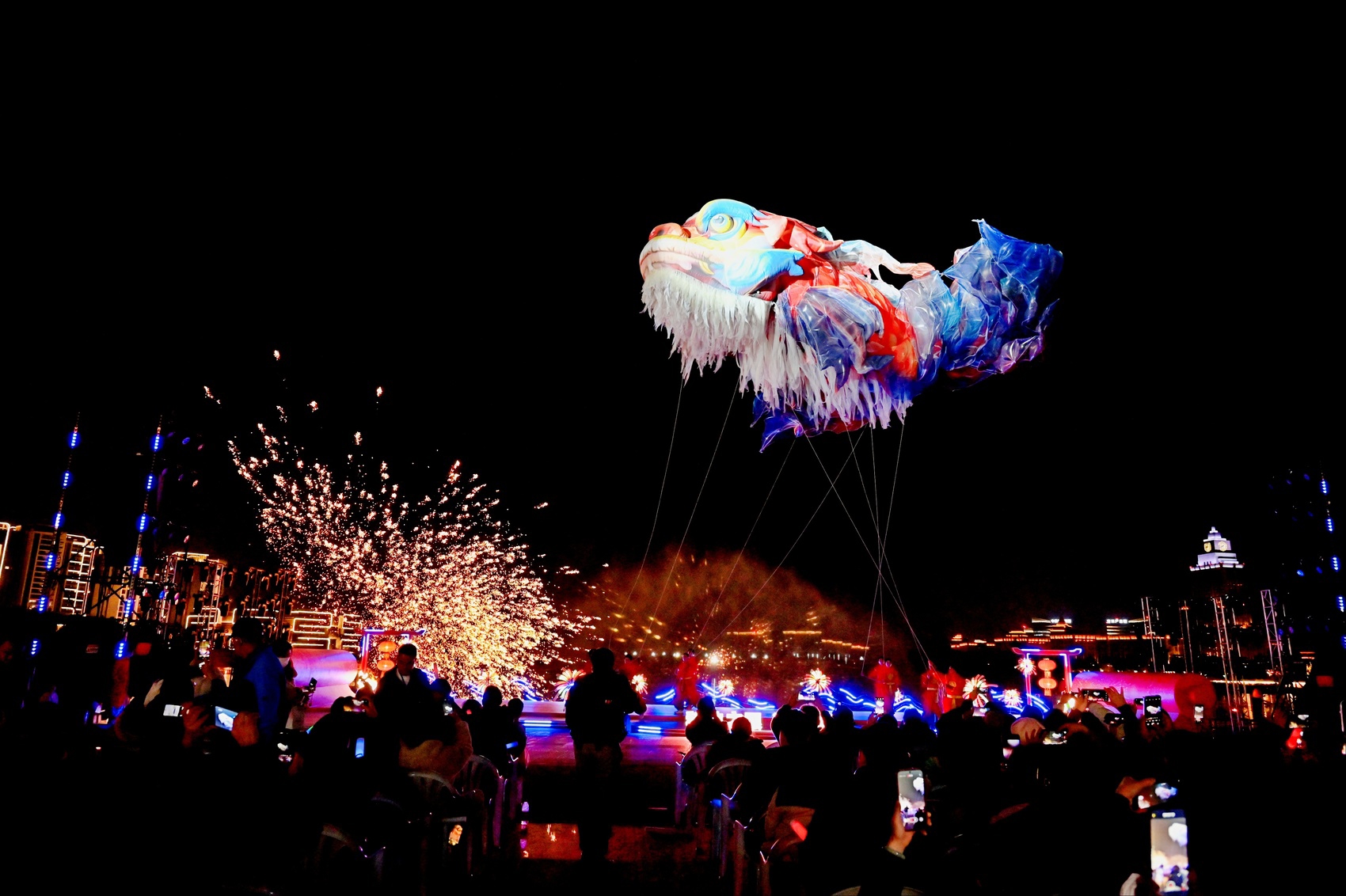 大年初二晚,“青睞綿陽(yáng)·有福之城”2026年金西湖新春系列活動(dòng)熱鬧非凡。水幕激光秀將現(xiàn)代科技與藝術(shù)完美融合,在湖面上勾勒出華美畫卷;千架無人機(jī)組成的燈光秀,在夜空中書寫出對(duì)未來的美好祝愿。湖畔的文藝晚會(huì)和“妙會(huì)”集市,讓市民游客在歌舞與美食中,開啟一場(chǎng)非遺韻味的溫情旅程。