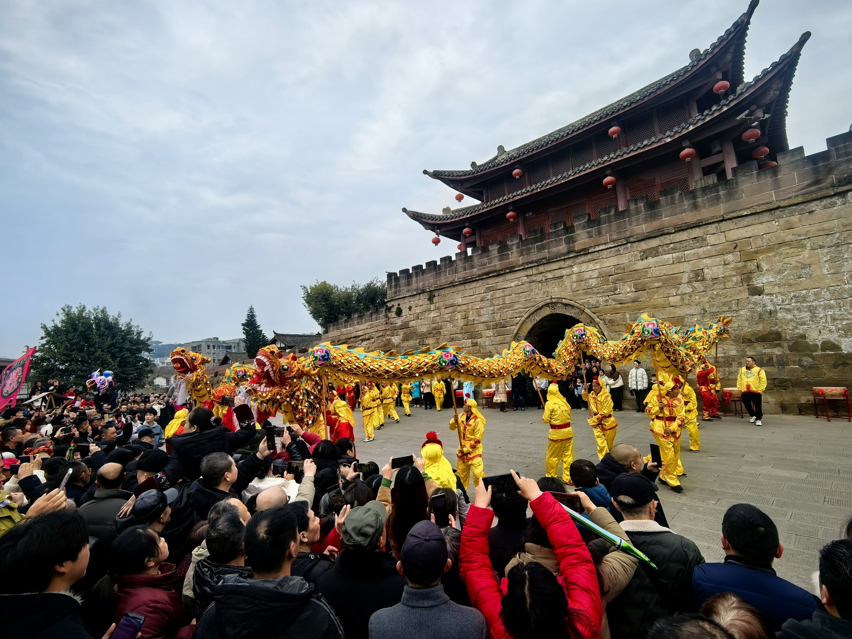 潼川古城好戲連臺,舞龍舞獅巡游熱鬧非凡。