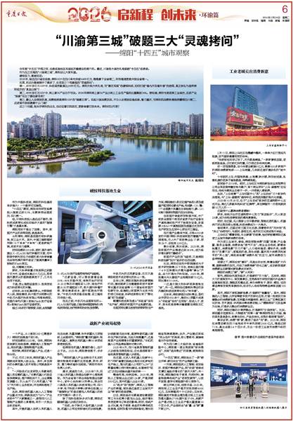 今天(2月24日)出版的《重慶日報》推出“2026啟新程 創(chuàng)未來·環(huán)渝篇”專欄,刊發(fā)整版報道《“川渝第三城”破題三大“靈魂拷問”——綿陽“十四五”城市觀察》,聚焦綿陽“十四五”期間在硬核科技、新興產業(yè)以及消費活力方面取得的亮眼成績。全文報道如下: