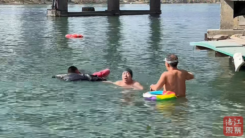 當(dāng)時(shí),正在附近進(jìn)行冬泳鍛煉的72歲賴大爺和62歲何大爺發(fā)現(xiàn),落水者即將沉入水中。兩位老人沒有絲毫猶豫,立即拿起救生圈,奮力游向落水者。在冰冷刺骨的江水中,他們拼盡全力,最終成功將男子營救上岸。
