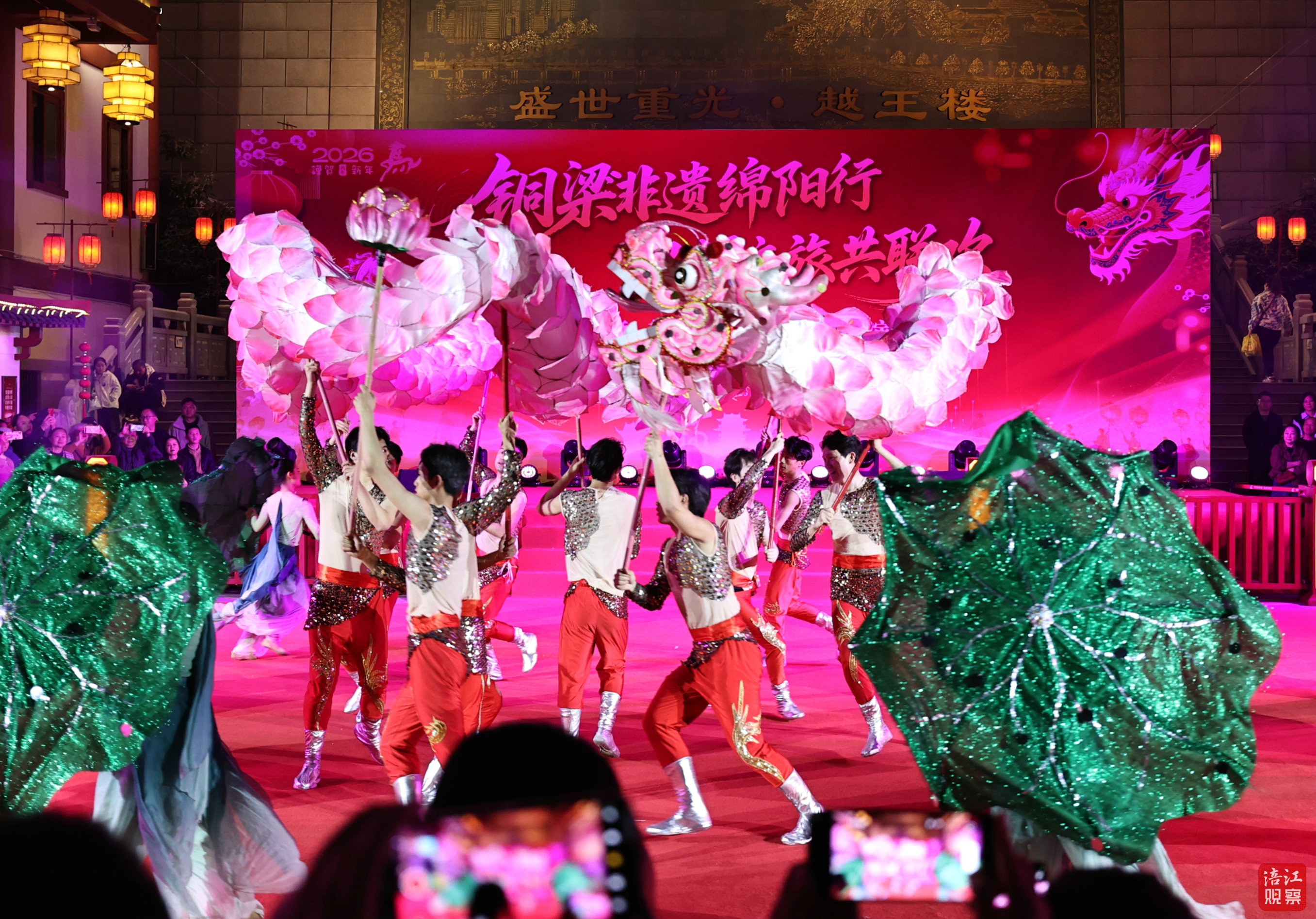 樓影流光,龍舞盛世。2月25日(農(nóng)歷正月初九)晚7點30分許,綿陽越王樓華燈璀璨,熱鬧非凡。綿陽和銅梁文旅共同舉辦的“銅梁非遺綿陽行 巴蜀文旅共聯(lián)歡”交流展演活動,在這座歷史文化名樓精彩啟幕。