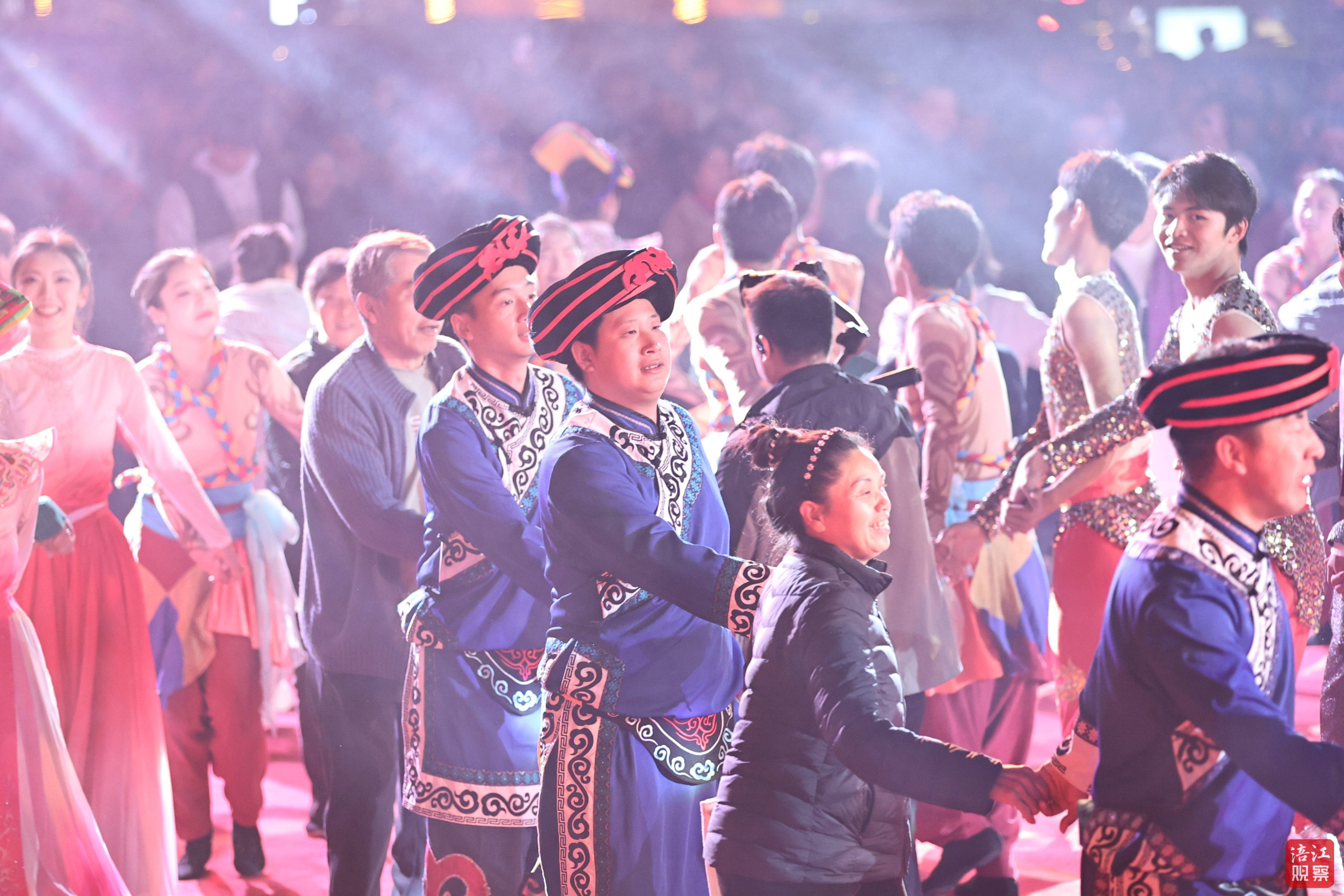 接著,國家級羌族(綿陽)文化生態(tài)保護(hù)區(qū)北川縣帶來的《沙朗傳歌》《各族兒女手拉手》等節(jié)目輪番上演,臺上臺下川渝演員共跳沙朗,將川渝人民的手足情深融入歌舞之中。