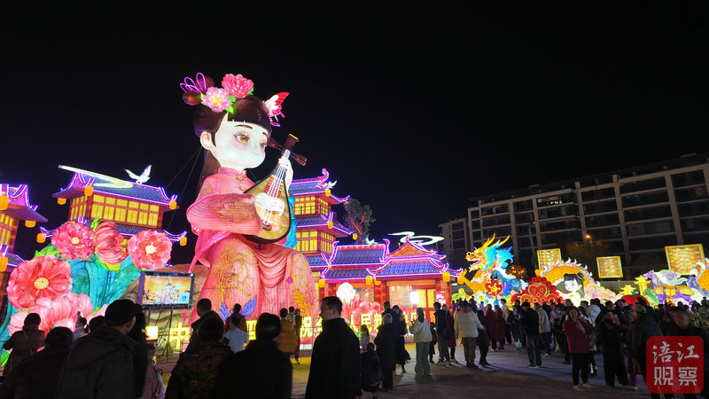 除了燈組,水上演出,漢服魚(yú)燈隊(duì)、財(cái)神、李白等NPC巡游互動(dòng),為燈會(huì)增添了更多趣味。