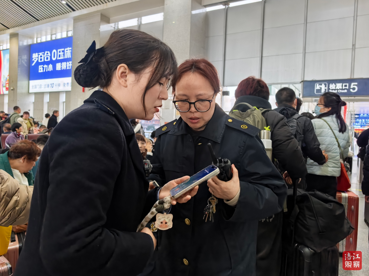 “我們的工作就是這樣,緊盯進(jìn)站口、檢票口、站臺(tái)各個(gè)點(diǎn)位,哪里客流大,就立刻趕往哪里引導(dǎo)進(jìn)出、疏散人群、維護(hù)秩序,讓旅客出行安心、順暢。”李璐君說(shuō),春運(yùn)期間,這樣的往返奔波、重復(fù)引導(dǎo)的頻次成倍增加。