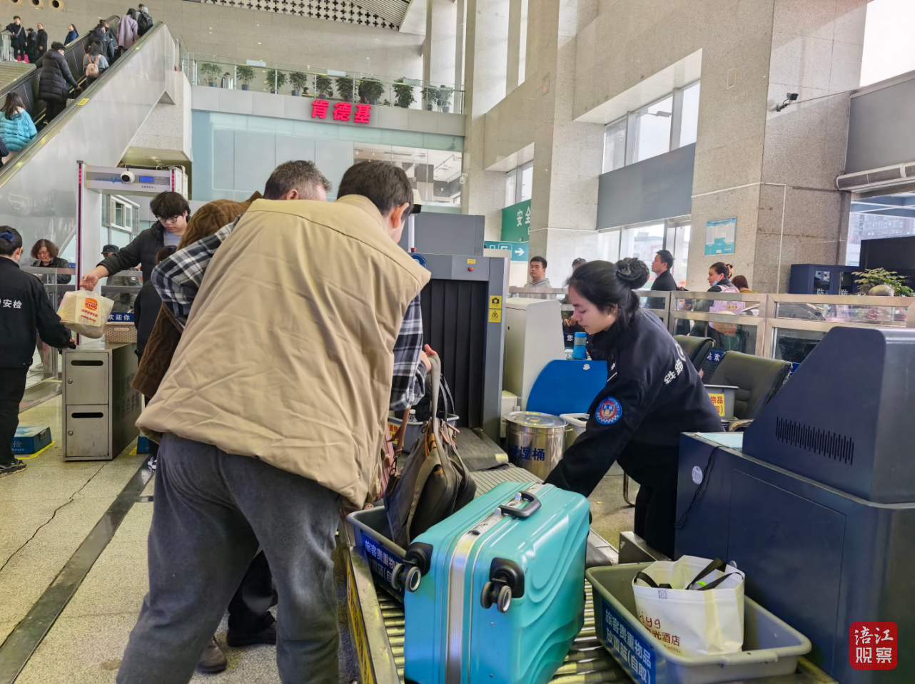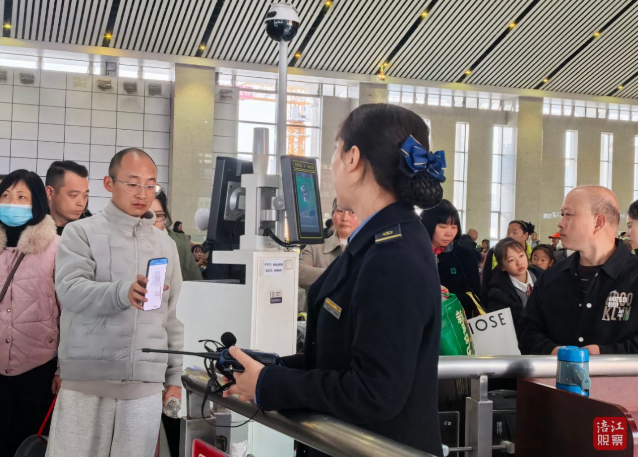 面對(duì)大客流,李璐君與同事們有著成熟穩(wěn)妥的“疏導(dǎo)法”——在二樓天橋先行分批放行旅客,避免人群扎堆;旅客下樓梯時(shí),采取“放一批、攔一段”的方式控制節(jié)奏,杜絕人流一窩蜂向下?lián)頂D,牢牢守住出行安全底線。