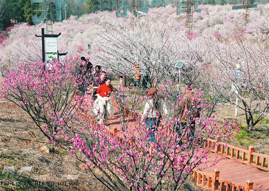 “去年和同事來過一次,盛花期的梅林古樸自然、美不勝收,今天再次來這里,打算玩一天,好好打卡留念。”一對(duì)來自成都的姐妹對(duì)梅林景致贊不絕口。成都游客趙先生表示:“專程帶一家人過來賞梅,梅花盛開、天氣晴好,孩子們玩得開心,我們也放松了心情,這趟旅行超值。”