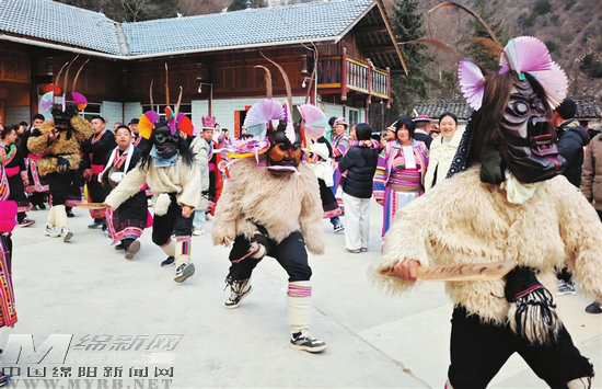 農(nóng)歷正月初五到初六,平武縣白馬藏族鄉(xiāng)各村寨熱鬧非凡,白馬藏族群眾身著色彩艷麗的民族盛裝,唱歌跳舞、祭祀祈福。在伊瓦岱惹村,國家級(jí)非物質(zhì)文化遺產(chǎn)——跳曹蓋祭祀活動(dòng)如期上演,村民們頭戴特色面具、身著精美服飾,踏著古樸粗獷的舞步,伴著悠遠(yuǎn)的誦經(jīng)聲開展祭祀,祈求風(fēng)調(diào)雨順、人畜平安、五谷豐登。