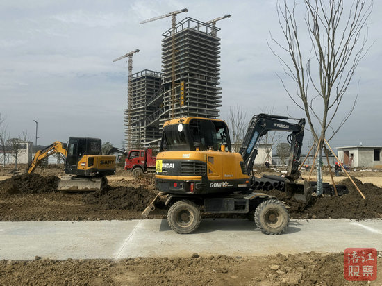 記者在現(xiàn)場(chǎng)看見(jiàn),數(shù)十名施工人員佩戴好安全帽忙碌在各個(gè)角落,挖掘機(jī)、渣土車等工程車輛往來(lái)穿梭,主體施工區(qū)域的作業(yè)面全面鋪開(kāi),一派繁忙景象。