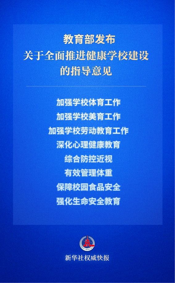 意見部署了8方面重點任務,分別是:加強學校體育工作、加強學校美育工作、加強學校勞動教育工作、深化心理健康教育、綜合防控近視、有效管理體重、保障校園食品安全、強化生命安全教育。