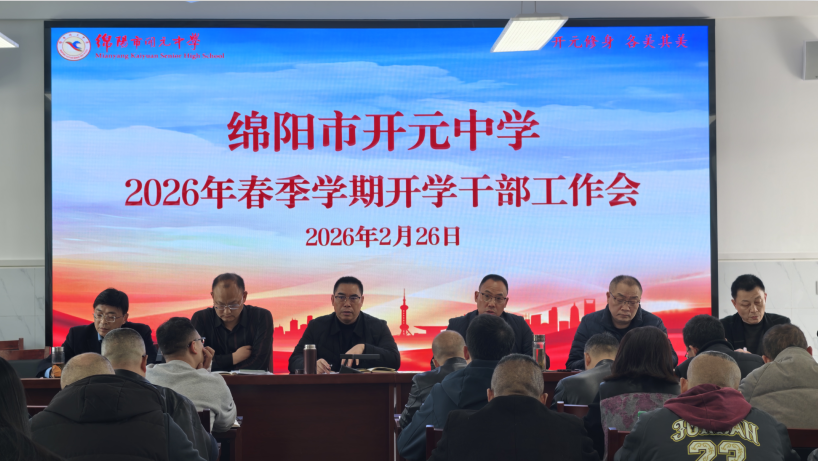 為了確保2026年春季開學(xué)各項(xiàng)工作平穩(wěn)、有序、高效推進(jìn),明確新學(xué)期工作方向,凝聚管理共識(shí),2月26日下午,綿陽市開元中學(xué)召開了以“凝心聚力啟新程 篤行實(shí)干謀發(fā)展”為主題的2026年春開學(xué)干部工作會(huì)。該校領(lǐng)導(dǎo)班子成員及全體中層干部參會(huì),會(huì)議全面部署新學(xué)期各項(xiàng)重點(diǎn)工作,為新學(xué)期學(xué)校高質(zhì)量發(fā)展謀篇布局。會(huì)議由黨委副書記、校長(zhǎng)敬正雄主持。