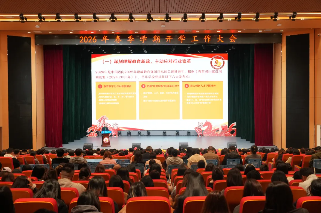 開學工作大會 綿陽富樂學校在2026年春季學期開學工作大會上,該校黨委書記梁春艷以“騏驥馳騁,馭新致遠”為主題作開學工作報告,明確本年度以“貫通?融合?賦能”為核心,深化十五年一貫制育人實踐。