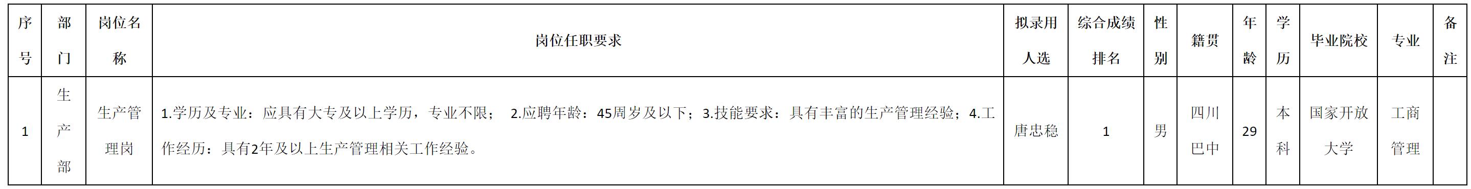 根據(jù)四川九華光子通信技術(shù)有限公司發(fā)布的招聘公告及招聘相關(guān)規(guī)定,經(jīng)測(cè)試、考察、體檢等程序,擬錄用唐忠穩(wěn)同志到四川九華光子通信技術(shù)有限公司工作,現(xiàn)予以公示,具體情況如下: