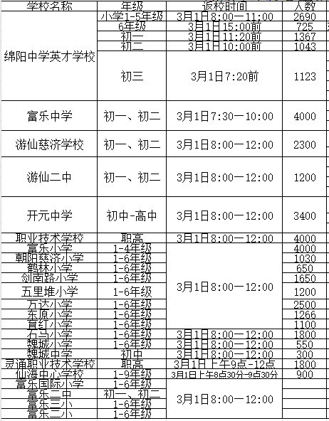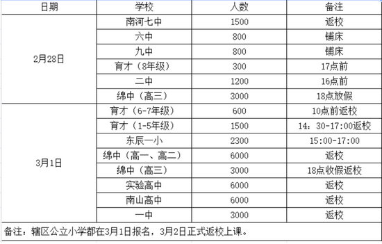 記者了解到,城區(qū)各學(xué)校具體返校情況如下: