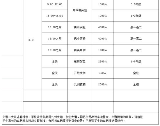 01.社會(huì)車輛請(qǐng)盡量避開校園周邊高峰時(shí)段和易堵路段,主動(dòng)選擇繞行線路,減少與接送車流疊加沖突;