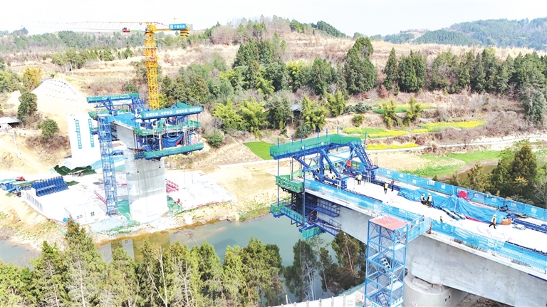 記者在位于三臺(tái)縣的全線重難點(diǎn)工程——蘇家河特大橋施工現(xiàn)場(chǎng)看到,巨大的橋墩已巍然聳立,工人正有序地進(jìn)行復(fù)工前的各項(xiàng)準(zhǔn)備工作。