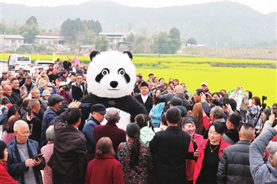 油菜花節(jié)活動現(xiàn)場游人如織。 記者 胥江 攝
