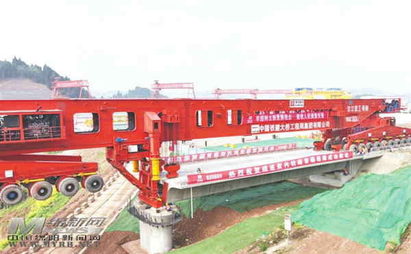 綿遂資內(nèi)鐵路首榀箱梁成功架設(shè)。記者 唐甜 攝