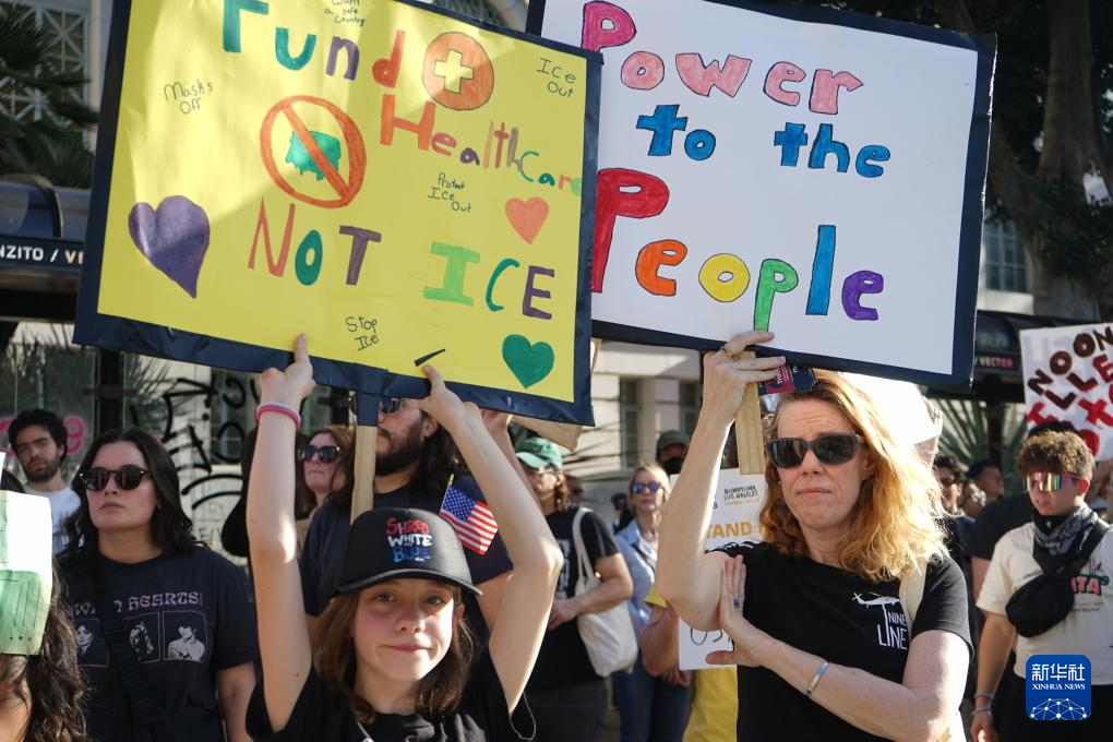 美國(guó)南加州多地舉行反暴力移民執(zhí)法示威活動(dòng)