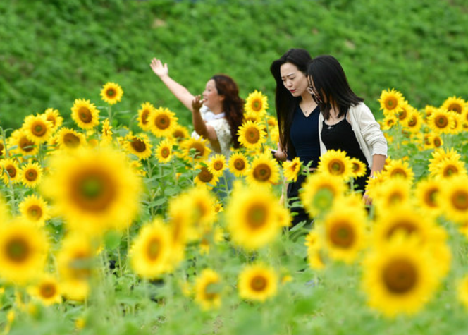 金秋十月,游仙區(qū)石馬鎮(zhèn)的向日葵花田進(jìn)入盛花期,連片向日葵生機(jī)盎然。[