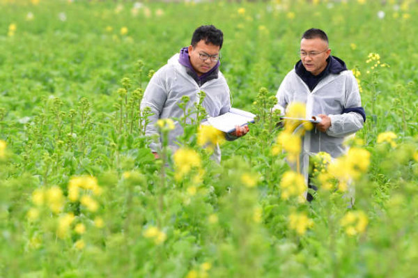 2月26日,記者在綿陽(yáng)新橋鎮(zhèn)、忠興鎮(zhèn)等地農(nóng)村看到,在油菜花綻放的田野中,蜜蜂成群,身著白色工作服的農(nóng)技服務(wù)人員站在花田間,細(xì)心地記錄苗情、蟲害情況,及時(shí)為油菜制種和種植戶提供科學(xué)的田管技術(shù)指導(dǎo),促進(jìn)油菜優(yōu)質(zhì)高產(chǎn)。 [