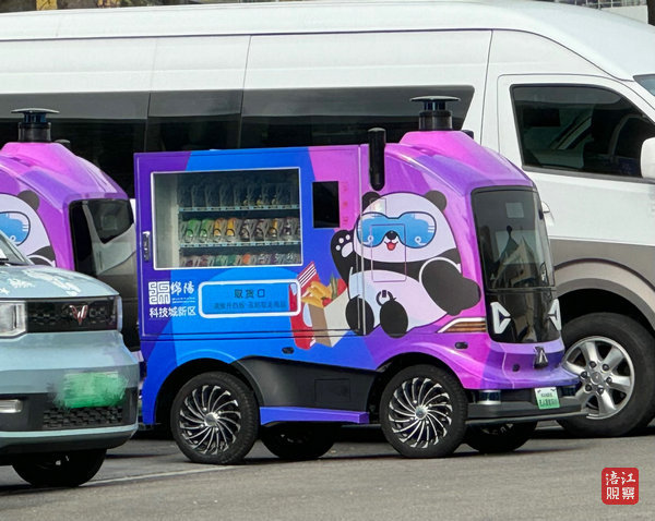 11月7日上午10時,記者一進(jìn)入綿陽國際會展中心,就看到一輛輛身披星光紫配色“外套”的無人配送車搭載著各種食品和飲品來回穿梭,市民游客們圍著自助“零食車”,或打卡拍照,或體驗(yàn)購買產(chǎn)品。不遠(yuǎn)處還停放著無人駕駛公交車,等候著為市民游客提供擺渡服務(wù)。[