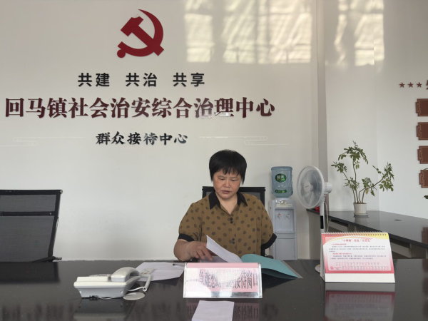 再次見到冉體蘭,是個炎熱的下午。烈日匝地,在大英縣回馬鎮(zhèn)社會事務(wù)和社會治理辦公室的一樓接待中心,她穿著藤黃色的短袖棉綢襯衫,短發(fā)干練,正記錄來訪群眾的事宜。 [