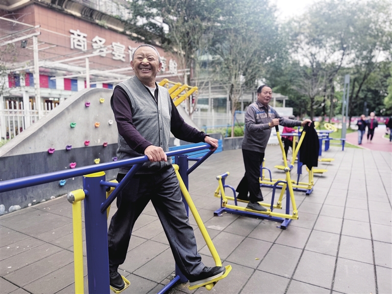 七十歲的李大爺,每天的晨練在離家一百多米的范圍即可完成。從他居住的翠滿庭小區(qū)(位于涪城區(qū)躍進北路)到小區(qū)旁口袋公園健身區(qū),不過百步之遙。在過去,他從小區(qū)到五一廣場鍛煉,趕公交車需經(jīng)過四站,耗時半小時。 [