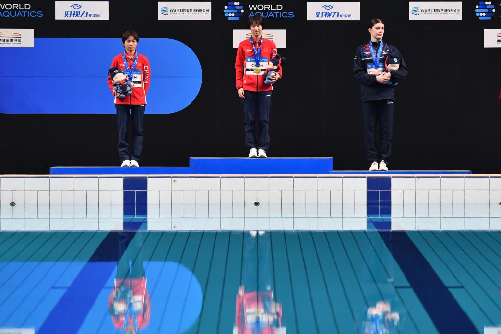 2023年世界泳聯(lián)跳水世界杯西安站16日在西安奧體中心游泳跳水館落幕,包攬金牌的中國隊共收獲9金2銀,位列獎牌榜第一。[
