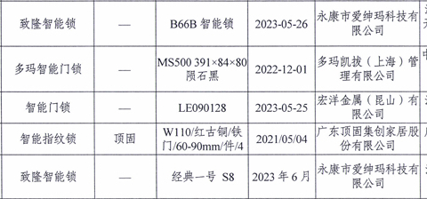 “頂固”等5批次智能門鎖產品抽檢不合格