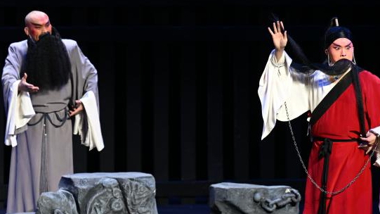 1月19日,青年顧炎武飾演者楊陽(右)在演出中。當日,作為“相約北京·遇見江南”蘇州文化藝術(shù)展示周精品展演劇目之一,原創(chuàng)昆劇《顧炎武》在北京天橋劇場上演。[