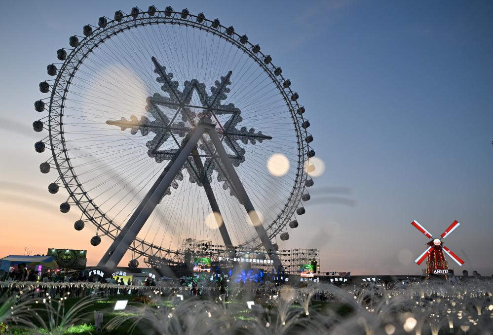 這是7月20日拍攝的啤酒節(jié)現(xiàn)場。 當(dāng)晚,第二十一屆中國·哈爾濱國際啤酒節(jié)在哈爾濱冰雪大世界園區(qū)開幕。本屆啤酒節(jié)設(shè)置啤酒大棚、國風(fēng)美食街、哈爾濱名優(yōu)特食品展區(qū)、生態(tài)露營區(qū)和互動游樂區(qū)等,為市民和游客帶來多重體驗。 [
