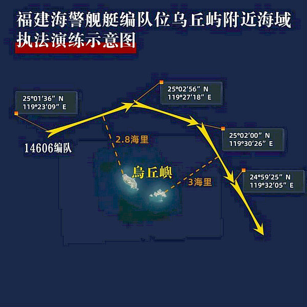 中國海警局新聞發(fā)言人甘羽表示,5月23日,福建海警組織艦艇編隊位烏丘嶼、東引島附近海域開展綜合執(zhí)法演練,檢驗聯(lián)合巡航、快速反應(yīng)及應(yīng)急處置能力。[