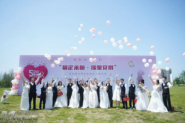 5月20日,在這個被賦予浪漫色彩的特殊日子,安州區(qū)舉辦“情定永恒·緣聚安州”集體婚禮暨集體頒證主題活動。10對新人在這場簡約而不失浪漫的集體婚禮中步入婚姻殿堂,以實際行動宣傳移風易俗,推進婚俗改革。 [