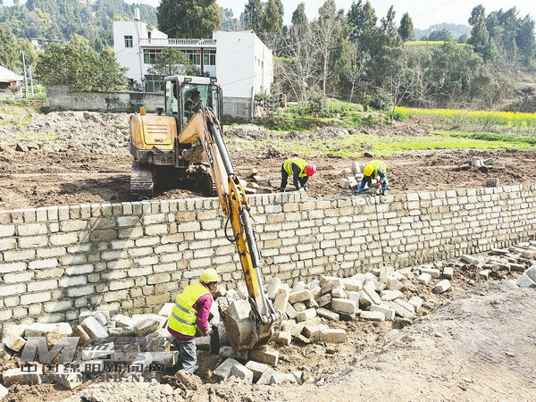 近日,記者在都江堰灌區(qū)三臺縣中新鎮(zhèn)高標準農田及農業(yè)產業(yè)建設項目現(xiàn)場看到,新建的2.17公里灌溉渠系已進入收尾階段,挖掘機將磚頭運向溝渠,工人正在修筑渠道護坡、硬化渠底。[