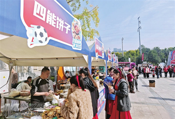 11月23日,在三臺(tái)縣體育場,綿陽隊(duì)主場迎戰(zhàn)阿壩隊(duì)。比賽開始前,賽場外一系列豐富多彩的文化和美食活動(dòng)吸引了眾多球迷和市民的目光。 [