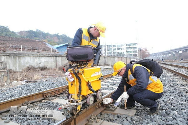 日前,綿陽一處鐵路軌道上,工作人員手推探傷儀,沿著一根根軌道緩步前行。刺骨的寒風(fēng)吹過,他們的臉被凍得通紅,飛馳而過的列車和綿延千里的鐵軌,都見證著他們的付出和奉獻(xiàn)。他們認(rèn)真履行“望聞問切”的職責(zé),守護(hù)著萬千旅客的平安回家路。 [